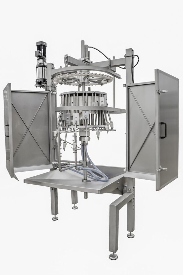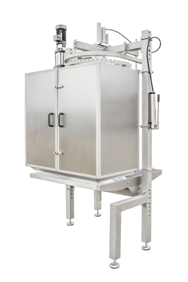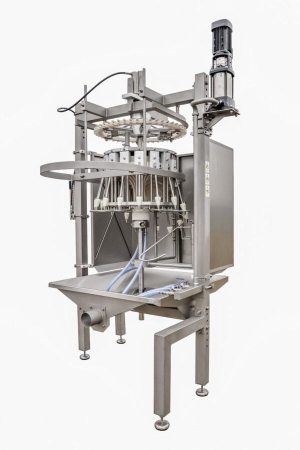 The apparatus is designed to wash the outside and inside of eviscerated chicken carcasses. The weight of the eviscerated carcass must be between 0,8 and 2,5 kg.