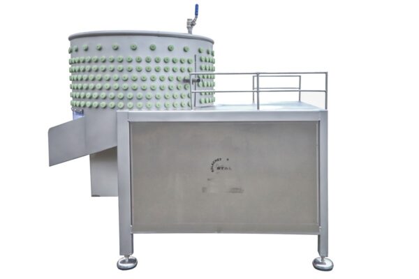 For smaller carcasses (e.g. chickens, a plucking machine with a drum diameter of 800 mm is sufficient, while for large carcasses (turkeys) a plucking machine with a drum diameter of 950 mm should be used).