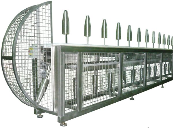 Główną część dzielarki stanowi stół z zamocowanymi uchwytami do nasadzania drobiu oraz przenośnik taśmowy, służący do transportowania podzielonych elementów. Dzielarka jest urządzeniem, które można w pełni dostosować do potrzeb inwestora. Stosownie do wielkości dzielonego drobiu wykonuje się odpowiedniej wielkości uchwyty do nasadzania drobiu, mocowane we właściwych odstępach. Do wyboru są uchwyty wykonane ze stali nierdzewnej, lub z tworzywa sztucznego przystosowanego do kontaktu z żywnością. Długość dzielarki zależy odwydajności linii dzielenia. Stanowiska z uchwytami do nasadzania kurczaka, mogą znajdować się po jednej lub po dwóch stronach przenośnika transportującego podzielone elementy.