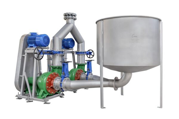 The feather pump is used to transport feathers from the poultry plucking process in slaughter plants. The feathers must be transported together with water.