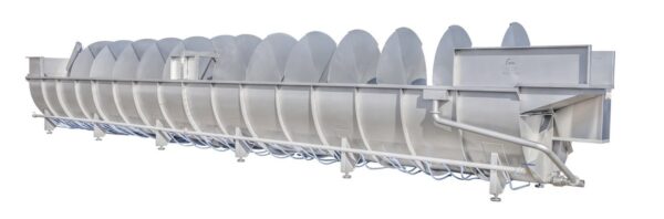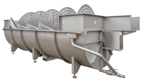 The cooler is designed to reduce the temperature of eviscerated poultry carcasses in water.