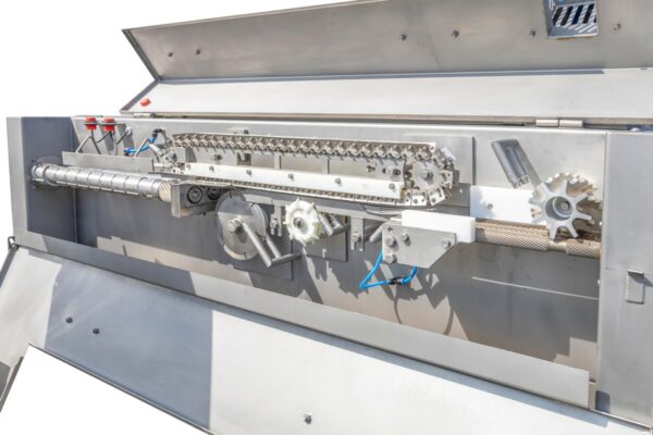 The automatic stomach machine is a multi-purpose device. The stomach, which enters the automatic machine together with a package of intestines, leaves it as a finished product, requiring no further processing.